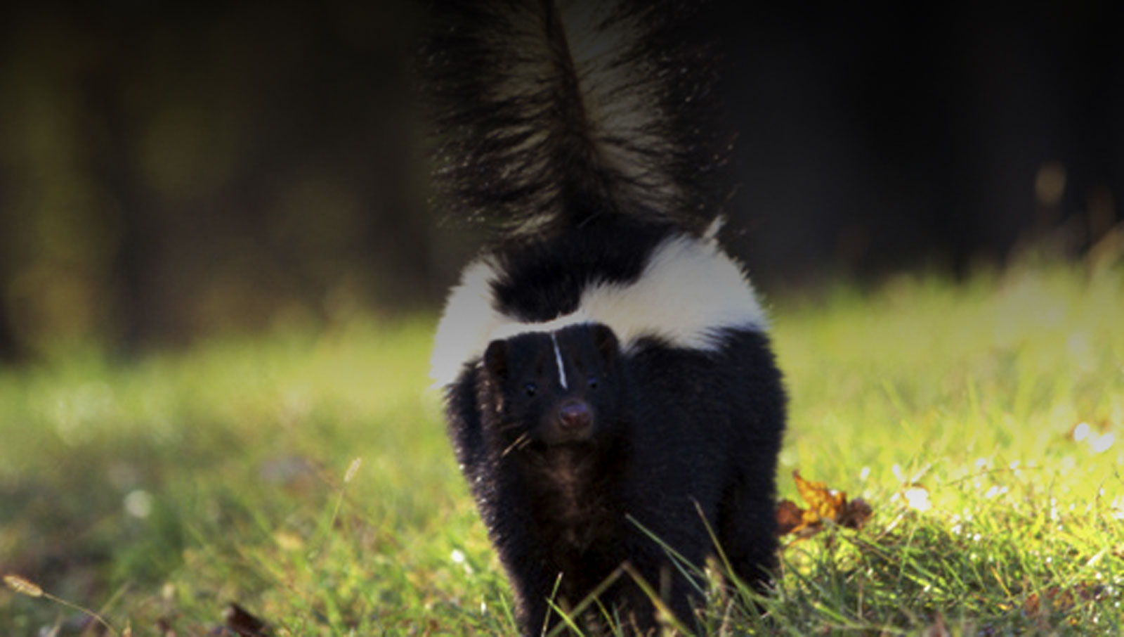The best way to deter skunks from your property is to make it unattractive to them. This means making food unavailable (keeping garbage cans in at night, cleaning up fruit off the ground) and blocking off spaces where they might try to den. Relocating animals isn’t very effective since another skunk will mostly likely move into the territory.